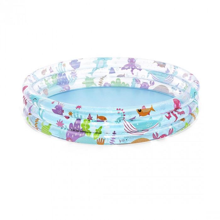 Надувной бассейн Bestway "Подводный мир" для взрослых и детей от 2 лет. Изготовлен из высококачественного винила, имеет три надувные камеры, устойчивый, надежный и безопасный. Мягкие стенки с широкими бортиками и жесткое дно из ПВХ-пленки.