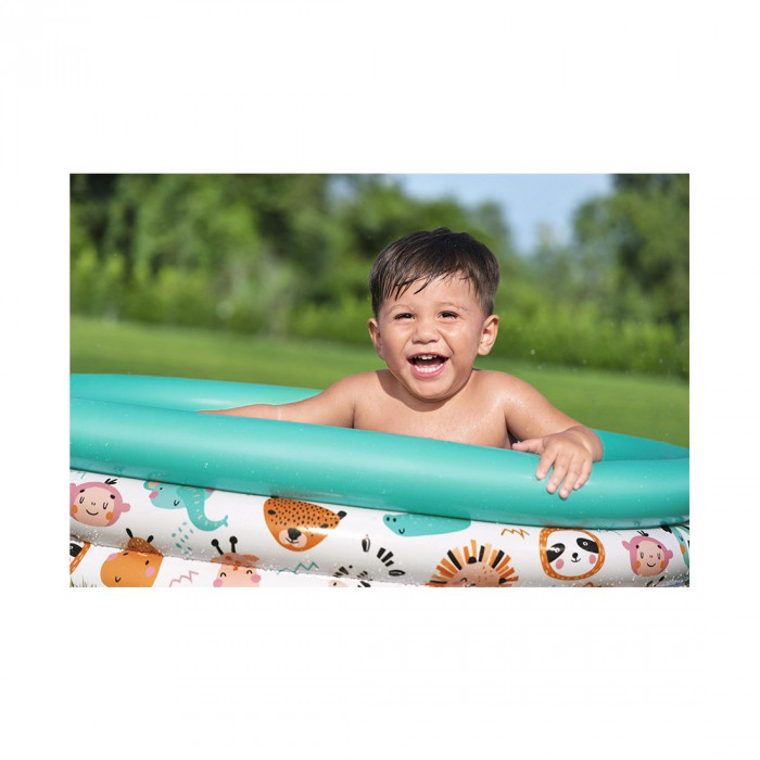 Приготовьтесь провести время со своими любимыми очаровательными зверюшками в детском бассейне Bestway® Safari Pals™! Благодаря трем одинаковым кольцам и очаровательной анималистической графике этот детский бассейн подарит огромное удовольствие детям в возрасте от 2 лет, которые любят плескаться весь день! Этот бассейн вместимостью 101 л воды станет идеальным аксессуаром для любого теплого летнего дня. Быстрая и простая установка бассейна позволит ребенку практически без задержки окунуться в воду. А когда ребенок закончит играть, бассейн можно будет легко слить, сложить и поместить на хранение до следующего раза. В холодные месяцы просто добавьте игровые мячики, и дети смогут наслаждаться круглогодичным весельем в помещении. Любой солнечный день станет немного счастливее с детским бассейном Bestway Safari Pals!