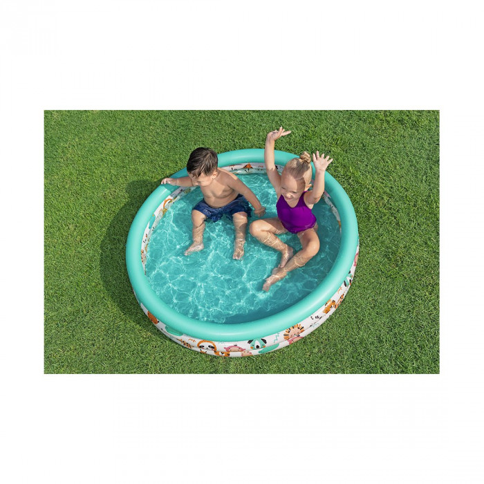 Приготовьтесь провести время со своими любимыми очаровательными зверюшками в детском бассейне Bestway® Safari Pals™! Благодаря трем одинаковым кольцам и очаровательной анималистической графике этот детский бассейн подарит огромное удовольствие детям в возрасте от 2 лет, которые любят плескаться весь день! Этот бассейн вместимостью 140 л воды станет идеальным аксессуаром для любого теплого летнего дня. Быстрая и простая установка бассейна позволит ребенку практически без задержки окунуться в воду. А когда ребенок закончит играть, бассейн можно будет легко слить, сложить и поместить на хранение до следующего раза. В холодные месяцы просто добавьте игровые мячики, и дети смогут наслаждаться круглогодичным весельем в помещении. Любой солнечный день станет немного счастливее с детским бассейном Bestway Safari Pals!