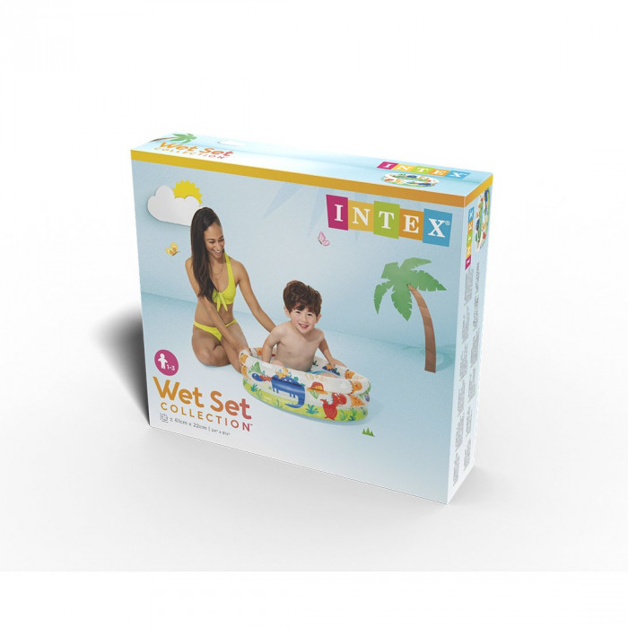 Детский надувной бассейн Dino Buddies 61 х 22 см, INTEX, 57106NP, Винил, 28л., 1+, Надувное дно, Многоцветный, Цветная коробка
