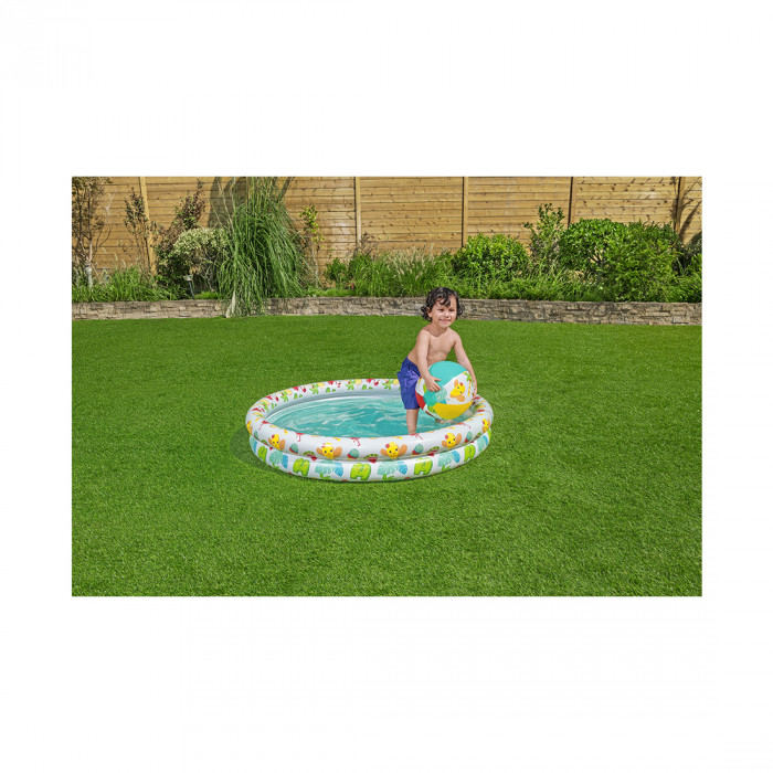 Подарите своему ребенку незабываемые летние развлечения на солнце с комплектом игрового бассейна Bestway® Beachtastic™. Бассейн, предназначенный для детей в возрасте от 3 лет, имеет объем 137 литров (36 галл.), легко устанавливается и поставляется с плавательным кругом и пляжным мячом, чтобы ребенок мог бросать его и играть с друзьями. На бассейне, плавательном круге и надувном мяче нанесены забавные тропические рисунки, которые обязательно понравятся вашему ребенку и продержатся много купаний! Кроме того, этот комплект легко надувать, сдувать и хранить, поэтому ваш ребенок сможет наслаждаться бассейном и на вашем заднем дворе, и на выезде! Настройте свою семью на фантастическое лето с игровым бассейном Bestway Beachtastic в комплекте!