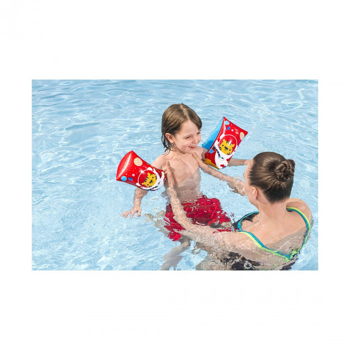 Подарите своему ребенку незабываемые впечатления от плавания с нарукавниками Bestway® Astro Tiger™! Вашему ребенку понравится плавать со своим новым приятелем тигром, воображая космическое пространство и межгалактические приключения во время обучения плаванию. Легко надуйте эти нарукавники, и пусть ваши дети наслаждаются чудом невесомого плавания в бассейне. Эти тренировочные нарукавники идеально подходят для детей в возрасте от 5 до 12 лет и помогут детям держаться на плаву и изучать правильные методы плавания, укрепляя их уверенность в воде. Положите нарукавники в спортивную сумку, чтобы подготовиться к следующему посещению бассейна, и чтобы ваши дети могли дать волю своему воображению и играть день напролет с нарукавниками Bestway Astro Tiger!