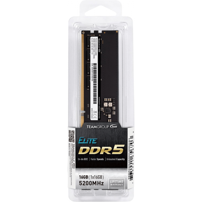 Модуль памяти TEAMGROUP ELITE U-DIMM DDR5 обладает ультравысокой частотой 5200 МГц и объемом 16 ГБ. Стандартное рабочее напряжение уменьшено до 1,1 В, таким образом вы экономите энергию и снижаете нагрузку на сети. Микросхемы управления питанием (PMIC) также были перенесены с материнской платы в ОЗУ для эффективного управления нагрузкой и снижения уровня помех. Данный модуль памяти оснащен встроенной функцией ECC, которая самостоятельно исправляет ошибки ячеек памяти DRAM, что обеспечивает стабильность систем DRAM, использующих DDR5. Так же TEAMGROUP предлагает пожизненную гарантию на свою продукцию.