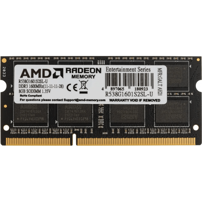 8-гигабайтная оперативная память SODIMM AMD [R538G1601S2SL-U] – отличный вариант для комплектации мобильного компьютера. Это устройство памяти можно использовать как для модернизации существующих модулей памяти, так и, при наличии соответствующей технической возможности, для увеличения количества установленной оперативной памяти. Модель соответствует широко распространенному типу DDR3L. Модуль совместим с очень большим количеством выпускаемых в настоящее время мобильных компьютеров.