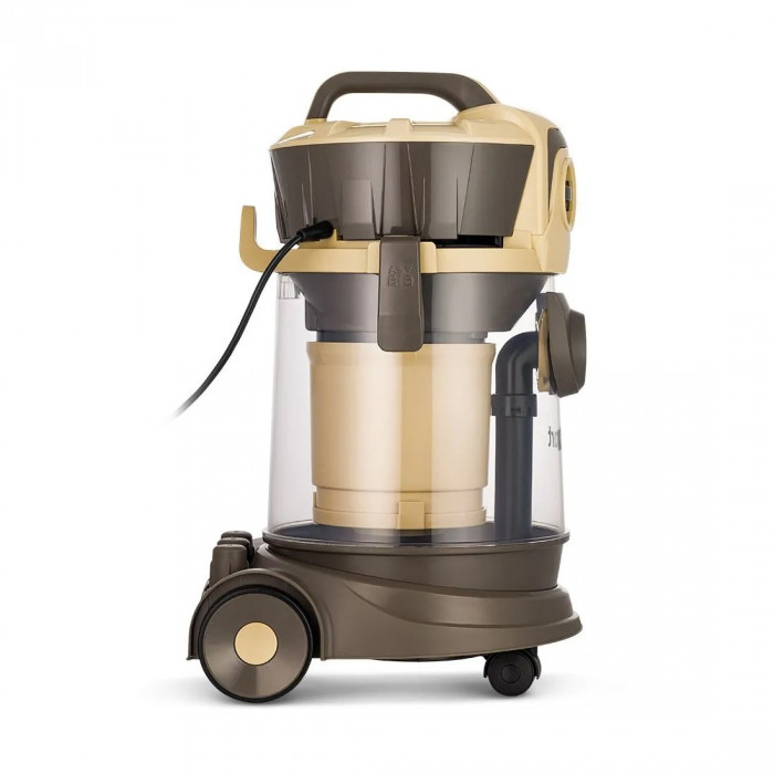 Устройство оснащено колёсами для легкого перемещения во время уборки и ручкой для переноски. Специальные держатели на корпусе и удлинительной трубке позволяют компактно и удобно хранить все аксессуары. Также на корпусе есть держатель для смотки шнура.Характеристики: