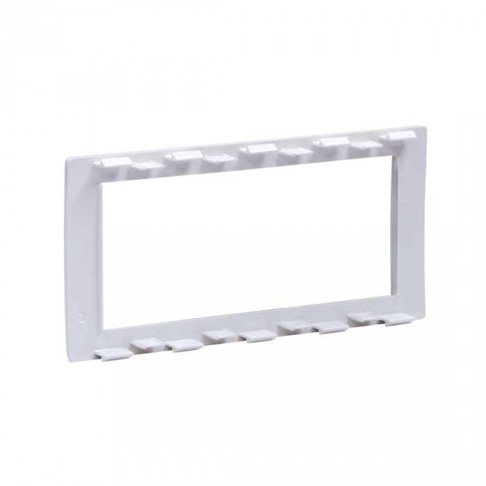 Рамка универсальная 4-модульная для ЭУИ. Назначение: монтаж ЭУИ серий "Viva" и типоразмера 45х45 мм в пластиковые короба серии "In-liner Front", алюминиевые короба и колонны "Aero", лючки и напольные башенки BUS. Характеристики: материал – АБС-пластик; универсальная − устанавливается поверх каркасов: F0000M, F0000MB, F0000A, F0000L; 2-модульная рамка устанавливается поверх одного 2-модульного каркаса; 4-модульная рамка − поверх двух 2-модульных каркасов; 6-модульная рамка − поверх трех 2-модульных каркасов.
