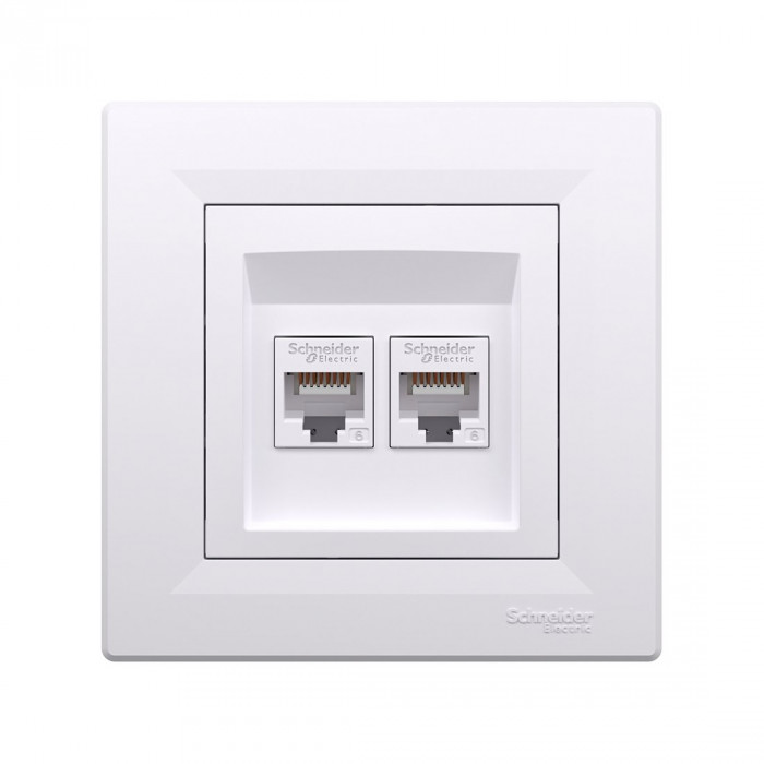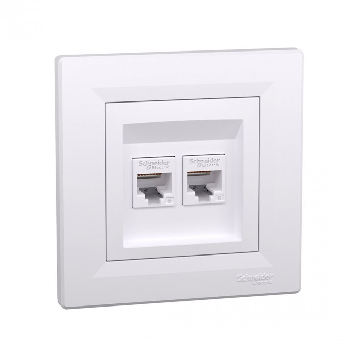 Розетка двойная компьютерная SE EPH4800121 Asfora RJ45 кат. 6 в сборе белый