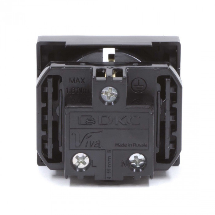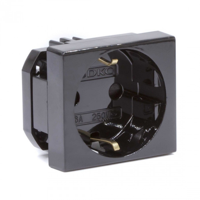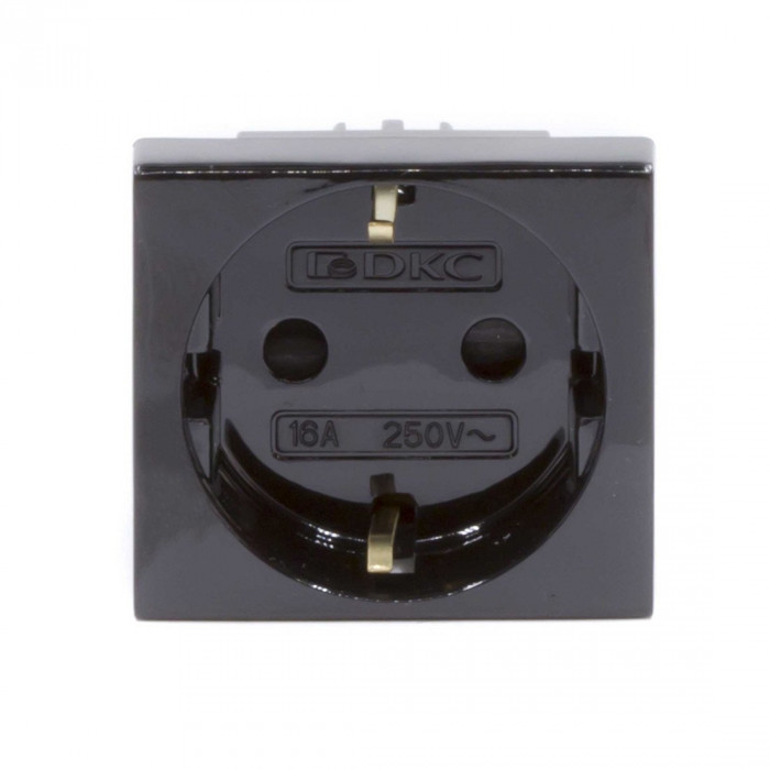 Розетка силовая серии Viva DKC 45205 2Р+Е со шторками чернаяБоковое подключение изделий к электропитанию позволяет экономить пространство при установке в кабель-канал. Специальный суппорт дает возможность закреплять изде...