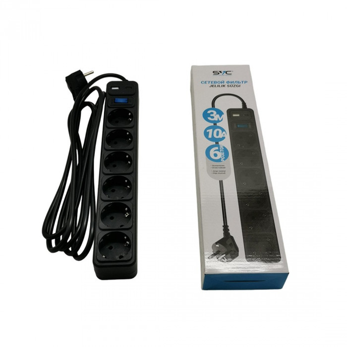 Сетевой фильтр SVC ZC6S-30M-USB/TypeC 3 м. 220 В