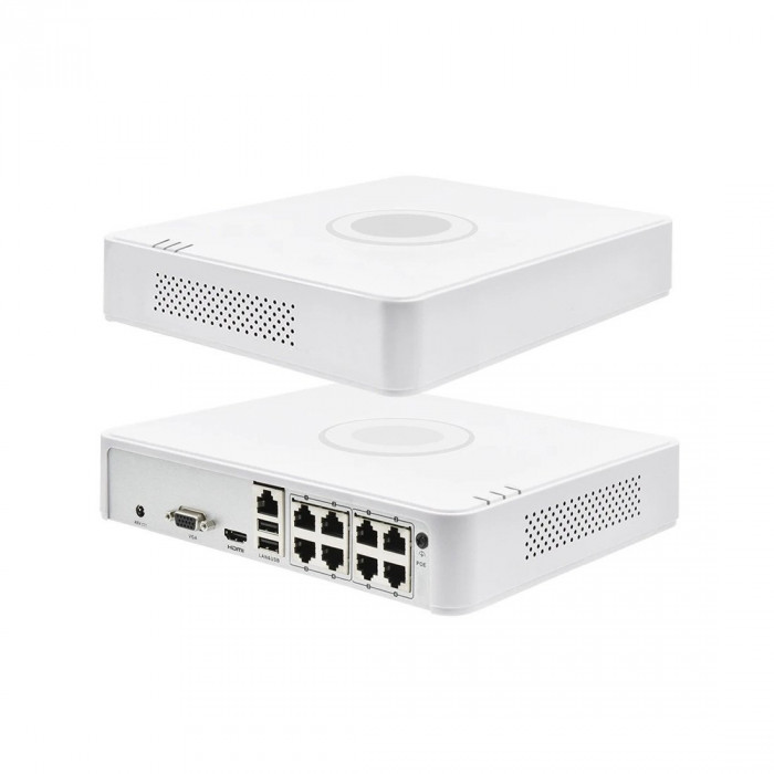 - Сетевой видеорегистратор (NVR) с 8 PoE‑портами для камер IP‑видеонаблюдения, предназначен для подключения до 8 IP‑камер, записи, просмотра, воспроизведения, управления через сеть и мобильные устройства.