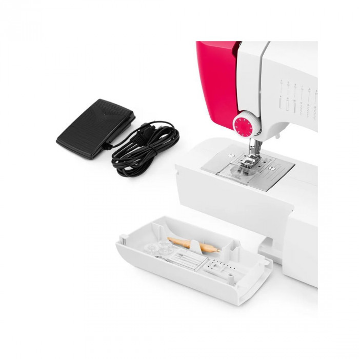 Технические характеристики модели позволяют выполнять все стандартные швейные операции: прибор может выполнять 18 видов строчек, включая строчки для обработки петель для пуговиц.Управляй как удобно