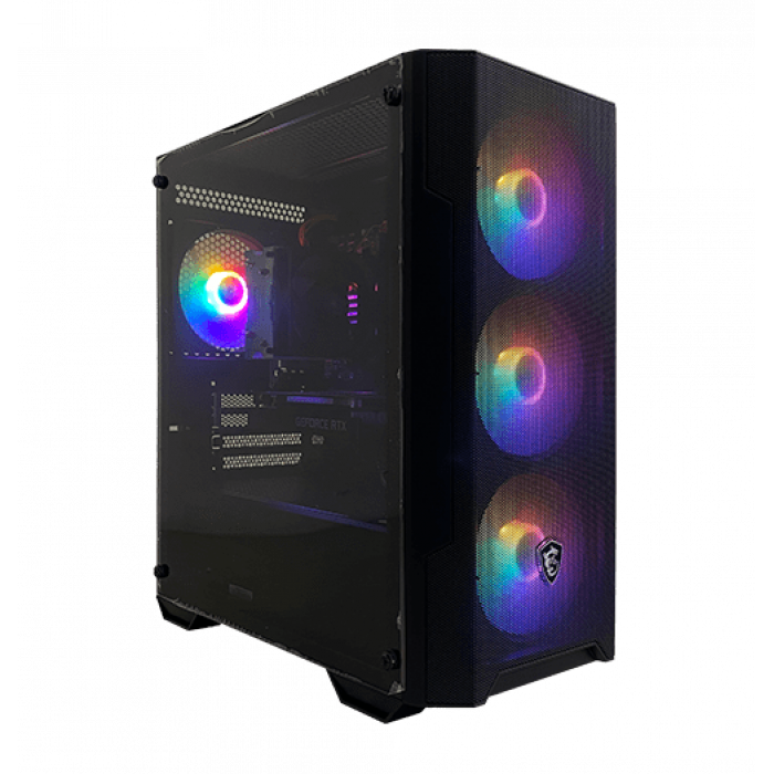 Питание обеспечивает PCCooler HW500 500W, а корпус MSI MAG FORGE M100A с четырьмя RGB-вентиляторами сочетает стиль, компактность и эффективное охлаждение.