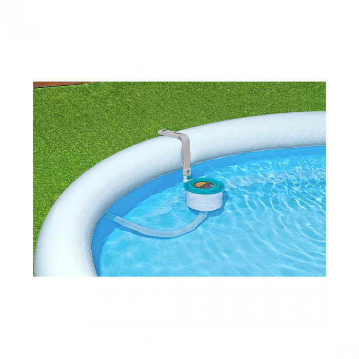Поверхностный скиммер для бассейна Bestway® очищает от мусора воду наземного бассейна, прежде чем она попадет в фильтрующий насос, увеличивая срок службы как вашего бассейна, так и насоса. Поверхностный скиммер просто цепляется с внутренней стороны стенки бассейна, возле всасывающего отверстия. Подсоедините его к фильтрующему насосу (производительностью 2006 л/час (530 галл./час) и выше) и вы увидите, как он начнет автоматически собирать мусор. Когда скиммер будет заполнен, опорожните его для повторного использования. Скиммер изготовлен из коррозионностойкого пластика, его легко чистить и обслуживать. Его можно использовать со всеми наземными бассейнами, за исключением бассейнов со стальными стенками, и этим летом он поможет вам избавиться от грязной работы по обслуживанию бассейна!