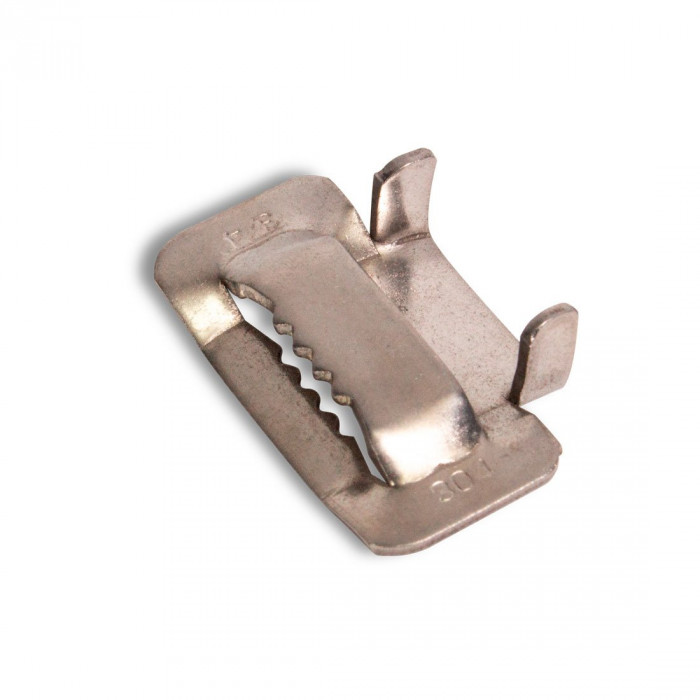 Скрепа (бугель) НС-20-Т предназначена для фиксации ленты из нержавеющей стали С-20 в процессе монтажа различных кронштейнов и узлов крепления на опорах ВЛ. Монтаж производится при помощи натяжного инструмента MBT-003, MBT-004. Бугель изготовлен из нержавеющей стали, имеет зубья.
