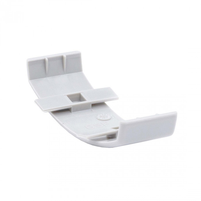 Соединение на стык для напольного канала 75х17 мм, GSP. Назначение: декоративное оформление стыка между двумя отрезками напольных коробов. Характеристики: материал – АБС-пластик; для стыковки коробов с аксессуаром необходимо надрезать или срезать полностью (по 7 мм с каждой стороны) мягкие вставки на крышках коробов (соединение рекомендуется монтировать на приподнятые или снятые с короба крышки). Цвет белый