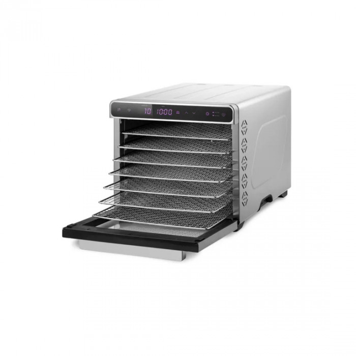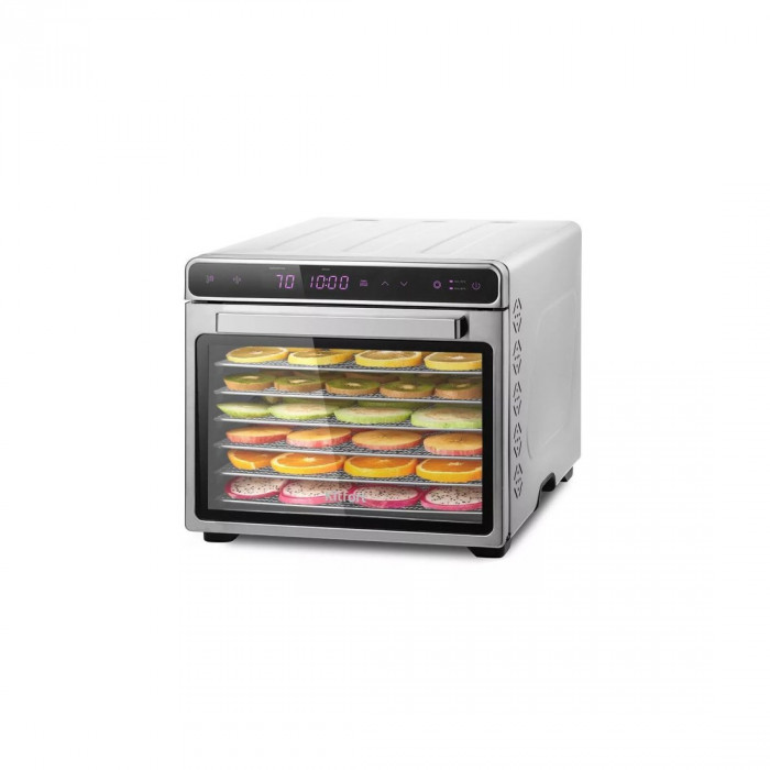 На сушилке можно устанавливать температуру сушки в диапазоне 35-75°C с шагом 5 градусов. Сушилка также оснащена таймером до 24 часов с шагом 30 минут. Для вашего удобства необходимые время и температуру сушки различных продуктов мы указали в инструкции.