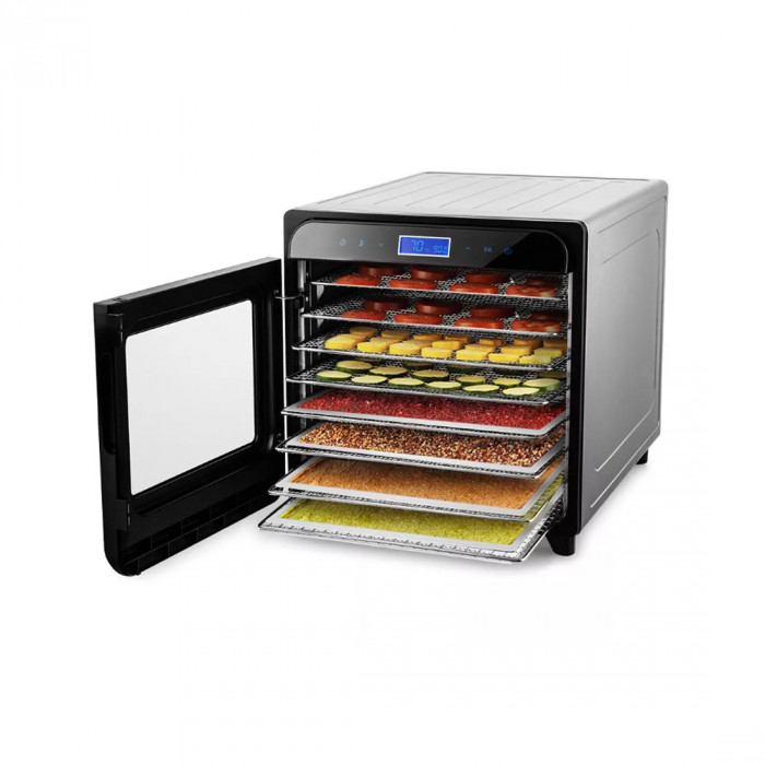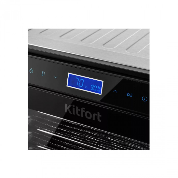 Подходит для сушки овощей, фруктов, ягод, грибов, трав, зелени, корнеплодов, а также хлеба, мяса, рыбы. Мощный нагревательный элемент и вентилятор увеличенного диаметра равномерно распределяют тепло по всему внутреннему пространству. Технология горизонтального обдува помогает уменьшить смешивание запахов.Панель управления позволяет установить температуру и время до 24 часов с шагом 60 минут. В комплекте с Kitfort KT-1934 поставляются 8 металлических сетчатых поддонов, 8 пластиковых сетчатых поддонов и 8 пластиковых сплошных поддонов. Металлический корпус защищает прибор от повреждений, а прозрачное окно на дверце позволяет наблюдать за процессом сушки продуктов.