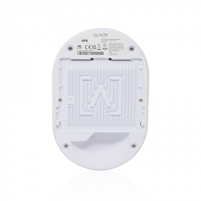 Alta Labs AP6 — высокопроизводительная двухдиапазонная точка доступа стандарта Wi-Fi 6 (802.11ax), обеспечивающая скорость до 2975 Мбит/с (574 Мбит/с на 2.4 ГГц + 2401 Мбит/с на 5 ГГц).
