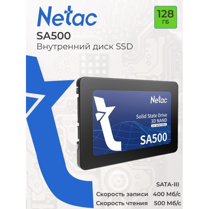 Твердотельный накопитель SSD 128Gb, SATA 6 Gb/s, Netac SA500, 2.5", 3D TLC, 500R/400W