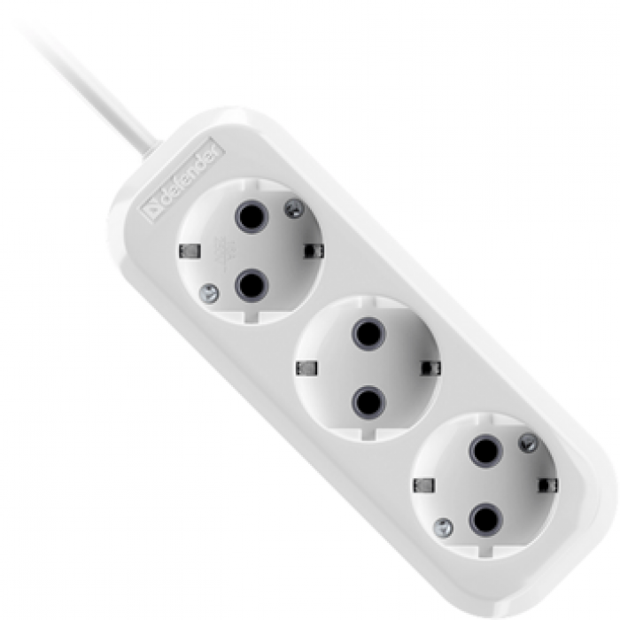 Удлинитель с заземлением Defender R330 16 А, 15 м, 3 розетки, белый