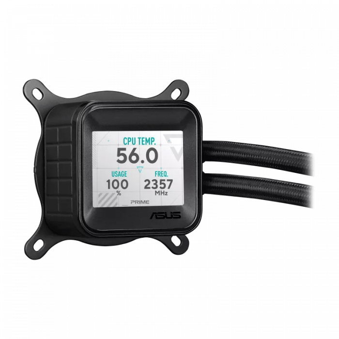 ASUS Prime LC ARGB LCD — жидкостная система охлаждения процессора с встроенным LCD-дисплеем, отображающим данные CPU и GPU в реальном времени. Оснащена высокопроизводительным насосом Asetek с надёжным мотором для стабильного охлаждения. Вентиляторы с последовательным подключением обеспечивают высокий статический напор и мощный воздушный поток. Дизайн идеально дополняет стиль материнских плат серии Prime. Укреплённые оплёткой шланги повышают долговечность и надёжность системы.