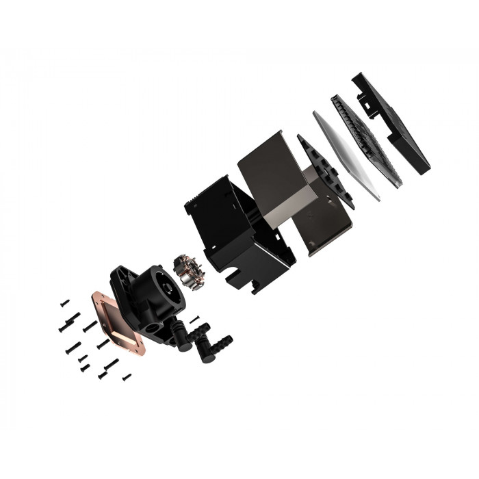 Два вентилятора с PWM-управлением позволяют гибко регулировать обороты, поддерживая оптимальный баланс между охлаждением и акустическим комфортом. Подсветка помпы придаёт системе современный вид и легко синхронизируется с другими компонентами ПК.